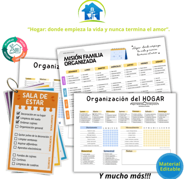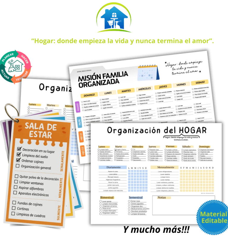 MISSION FAMILIA ORGANIZADA es un e-book práctico que guía a toda la familia a crear rutinas simples de orden y limpieza, con tareas claras y cooperación, logrando un hogar organizado sin estrés ni conflictos.